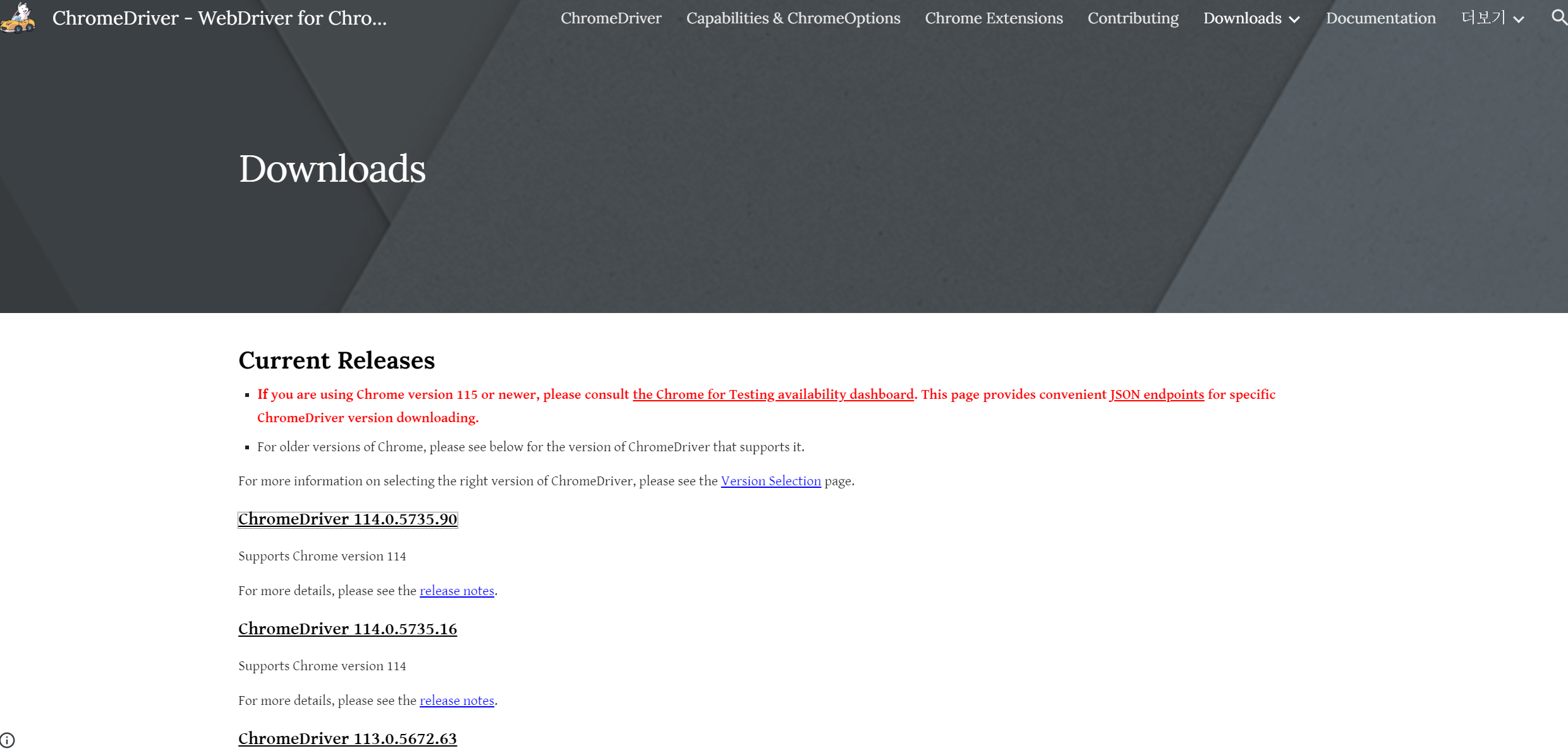 1. https://chromedriver.chromium.org/downloads 링크로 들어간다.